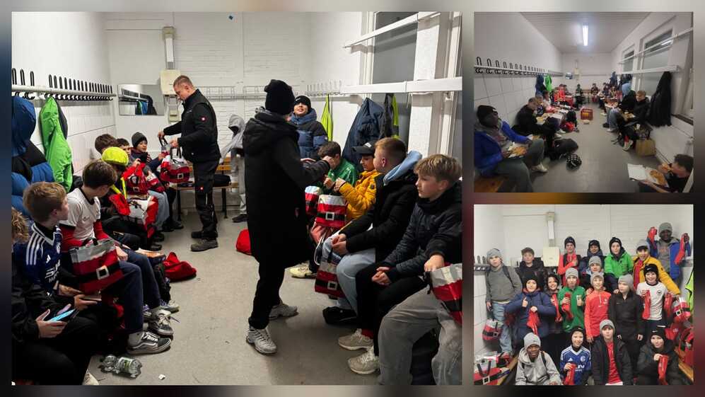 Jeder Spieler erhielt eine liebevoll gepackte Weihnachtstüte, gefüllt mit Nike-Mütze, Sportsocken und natürlich auch süßen Leckereien. Die Freude darüber war groß und sorgte sofort für strahlende Gesichter.