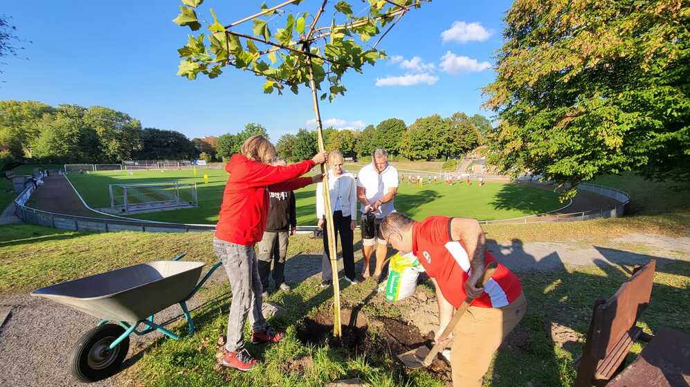 Der neu gewählte Vorstand rund um Christoph Kattentidt, Irmi Venschott und Ralf Speer ließ es sich nicht nehmen, selbst aktiv zu werden: Gemeinsam mit Unterstützung von Minka und Brigitte aus der Boule-Abteilung und weiteren fleißigen Helfern wurde im Borussen-Boulepark die erste Platane gepflanzt.