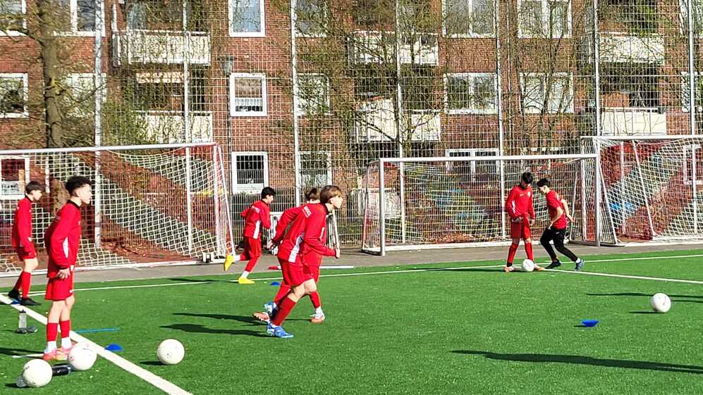 Gemeinsam mit Mats Klosa und Nick Zumdick arbeitet Felipe aktuell auch an seiner C-Lizenz und ist vom ersten Moment an voll drin, präsent auf dem Platz, nah an den Jungs und mit spürbarer Begeisterung für die Aufgabe.