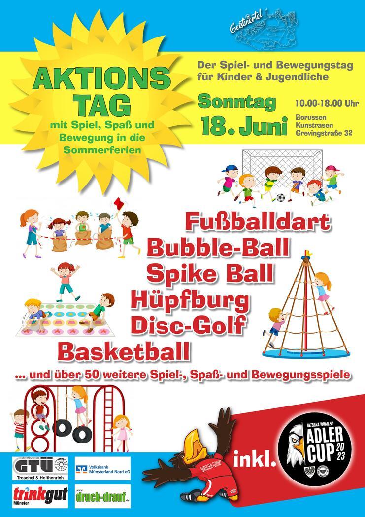 Im Rahmen des Aktionstages am 18. Juni 2023 findet auch der Adler-Cup 2023, ein internationales Fußballturnier für U12 Mannschaften, statt.
