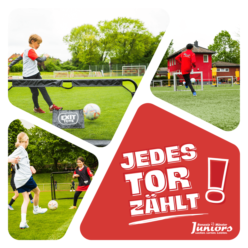 Der Ball muss im Netz zappeln! So macht es allen Spielern und Spielerinnen am meisten Spaß – egal in welcher Alters- oder Leistungsklasse sie kicken. Möglichkeiten, Tore zu bilden, gibt es viele. Dass vor allem im Kinder- und Juniorenfußball Minitore eine wichtige Rolle spielen und auch die Senioren diese immer wieder im Training einsetzen, sehen wir täglich bei uns an der Grevingstraße, wo mittlerweile fast 550 Kinder und Jugendliche in 30 Mannschaften Fußball spielen. Auch bei den zahlreichen Fußballcamps oder Bewegungs-Freizeiten sind sie im Dauereinsatz.