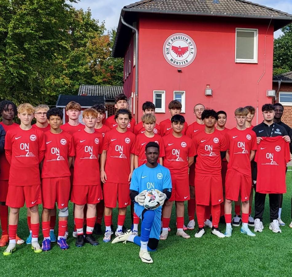 Das Team der Borussen-Juniors war am heutigen Montag zu Gast beim Hallenturnier der SpVg. Oelde. Bei 6 teilnehmenden Mannschaften wurde im Modus Jeder gegen Jeden gespielt. In der Auftaktpartie traf man auf den ASK Ahlen und konnte mit einem 5:3 Sieg gut in das Turnier starten. Es folgten das Aufeinandertreffen mit dem FC Gütersloh. In der ausgeglichenen Partie trennte man sich 3:3. Im weiteren Verlauf spielten die Borussen richtig gut auf und wurden durch 3 weitere Siege gegen SpVg. Oelde (6:0), SUS BW Lipperbruch (3:1) und SUS Kaiserau (5:2) verdient Turniersieger.