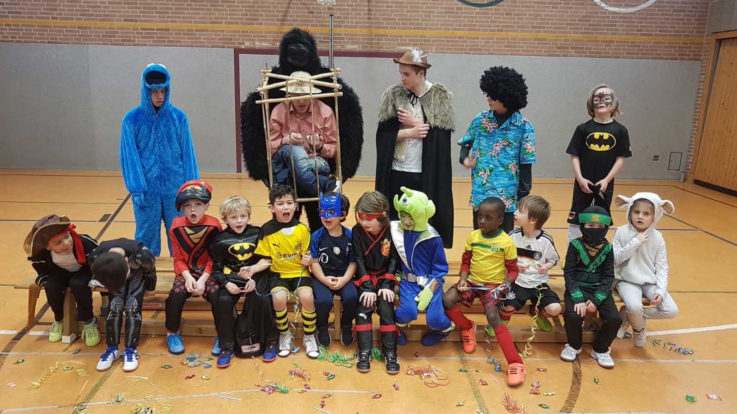 Das Trainerteam der U7-1, alle Coaches waren sensationell verkleidet, hatte die Mannschaft am Freitag wieder zum schon fast traditionellen Karnevalskicken eingeladen. So kamen die Spieler als Batmann, Cowboy, Nationalspieler, Ninja, Häschen oder Skelett verkleidet zum Hallentraining. Neben vielen Spaß-Spielen durfte am Ende des Trainings das Werfen der Kamelle natürlich nicht fehlen. Wieder einmal eine ganz tolle Fußballeinheiten für die Borussen-Juniors.