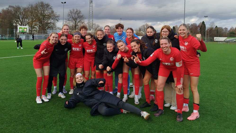 Die 1. Damen von Borussia Münster freuen sich mit dem 1:0 Auswärtssieg in Ibbenbüren über einen gelungenen Start in die Rückrunde.