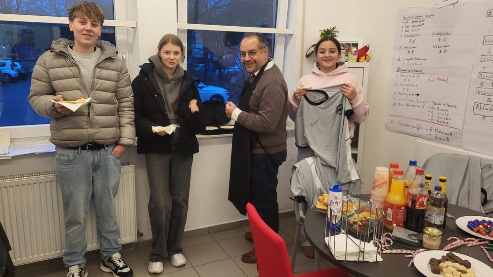 Jeder Spieler erhielt eine liebevoll gepackte Weihnachtstüte, gefüllt mit Nike-Mütze, Sportsocken und natürlich auch süßen Leckereien. Die Freude darüber war groß und sorgte sofort für strahlende Gesichter.
