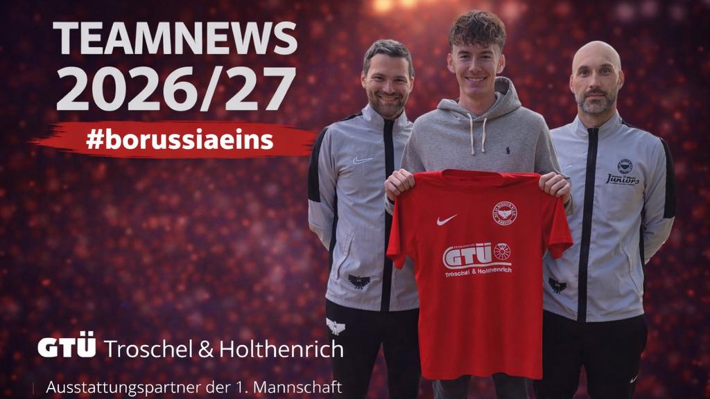 Mit zwei Neuzugängen startet #borussiaeins in die Rückrunde der laufenden Landesligasaison. Im Namen des Trainer-Trios hieß Jannis Kraus die beiden Neuzugänge nun offiziell willkommen. Beide Spieler sind auf den Außenbahnen zu Hause und sollen das Offensivspiel der Borussia beleben, nicht nur in der Rückrunde, sondern auch mit Blick auf die kommende Saison, für die beide bereits ihre Zusage gegeben haben.