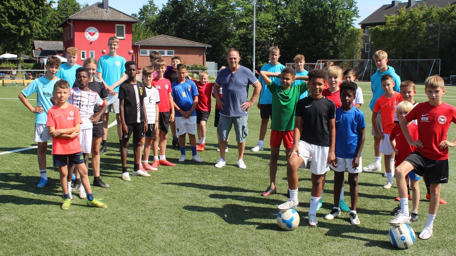 Am Freitag erhielten die Kinder und Verantwortlichen des Borussen-Ferienparks Besuch vom "berühmtesten Sohn" des Vereins Uwe Leifeld. "Eppi", wie er von seinen Freunden und Fans genannt wird, hat seine Karriere bei den Borussen-Juniors begonnen eher dann zum SC Preußen Münster und von da aus in die Bundeliga zum VfL Bochum und FC Schalke 04 wechselte. Für den VfL, für den er heute als Scout arbeitet, bestritt er 149 Spiele in der 1. Liga und erzielte dabei 50 Tore. Zum Abschluss seiner Laufbahn schnürte er dann noch einmal die Schuhe für unsere 1. Mannschaft.