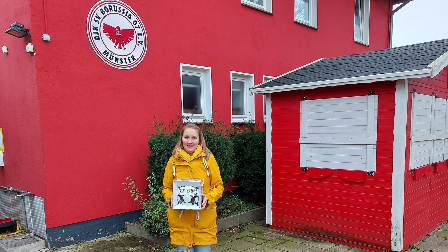 Als der Glücksbote vom "Borussen-Adventskalender“ Kontakt mit ihr aufnahm, war „Tina“, die bei den Borussen in der 2. Damenmannschaft spielt, überrascht und glücklich. Bei der spontanen Übergabe des hochwertigen Derbystar-Fußballs verriet sie, dass sie dem Ball entweder ihrem Neffen Luca, der wiederum in der U13-1 der Borussen-Juniors spielt, oder Luana, der Tochter ihres Lebensgefährten Alberto „Albi“ Costa, Trainer der 3. Mannschaft, schenken wird. Der Preis bleibt also in der großen (Borussen-) Familie.