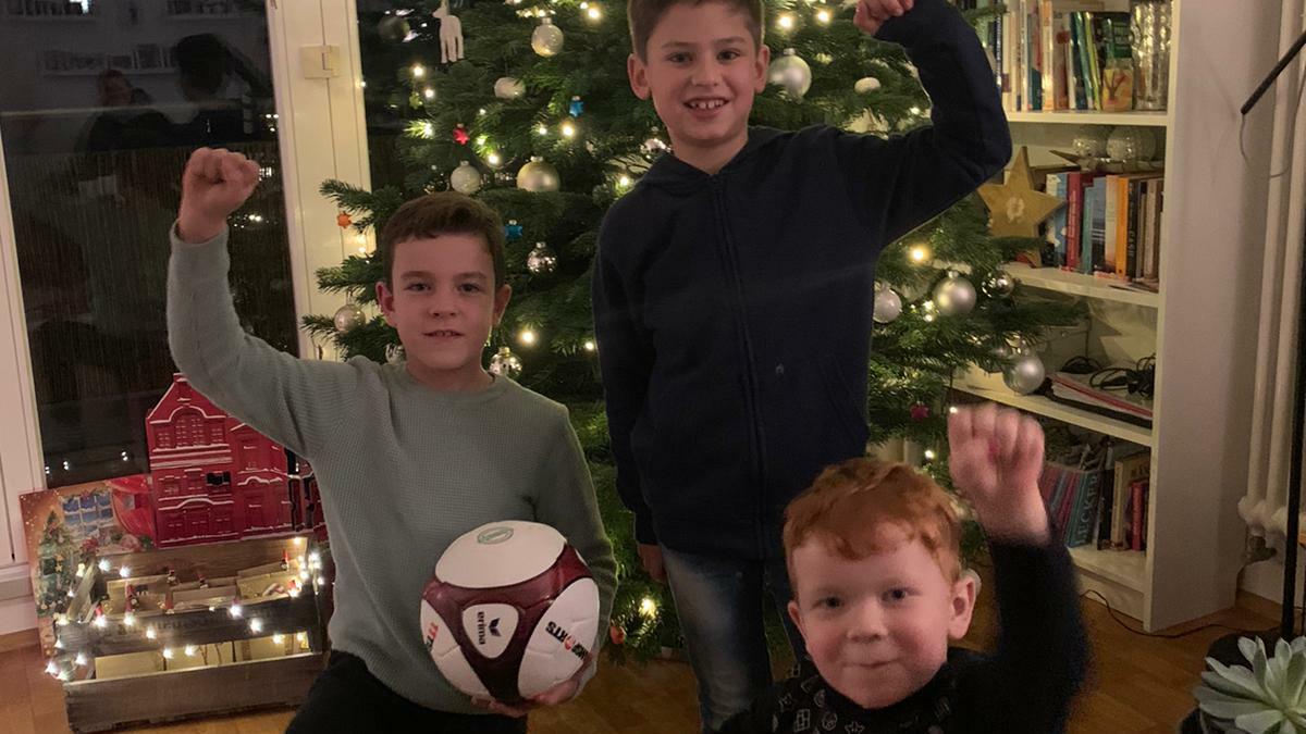 Über die beiden Fußbälle, die von 11teamsports zur Verfügung gestellt wurden, haben sich Emil, sein Bruder Jannes und sein Freund Lias sehr gefreut.
