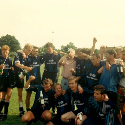 Nach einigen Jahren in der Kreisklasse gelingt der 1. Fußballmannschaft unter der Leitung von Rainer Leifken der Wiederaufstieg in die Bezirksliga.