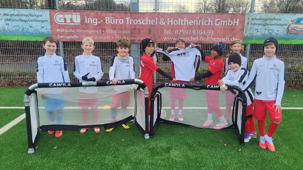Im Rahmen des Spenden-Weihnachtsbaum unterstützt GTÜ Troschel & Holthenrich das Projekt "Jedes Tor zählt" und gleichzeitig wurde die U10-1 mit neuen Trainings-Tops ausgestattet.