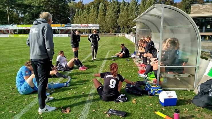Borussia hatte über weite Strecken mehr Torchancen, auch wenn die Passkombinationen und die Ballkontrolle nicht so funktionierten, wie wir uns das vorstellten. Viele Aktionen entstanden aus kämpferischem Einsatz, doch Aluminiumtreffer und eine stark aufgelegte Torhüterin der Gäste verhinderten die Führung. Auch Kinderhaus hatte immer mal wieder gute Phasen, die uns unter Druck setzten. Die erste Halbzeit endete somit 0:0.