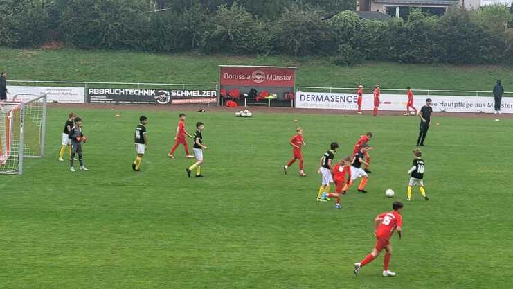 Unter der Woche stand dann das Auswärtsspiel bei Wacker Mecklenbeck auf dem Programm. Dort setzten die Borussen-Juniors ein klares Ausrufezeichen und gewannen souverän mit 6:0. Auch das Heimspiel am heutigen Spieltag gegen die TSV Handorf verlief erfolgreich: Mit einem knappen, aber verdienten 2:1-Sieg konnte das Team die Serie fortsetzen.