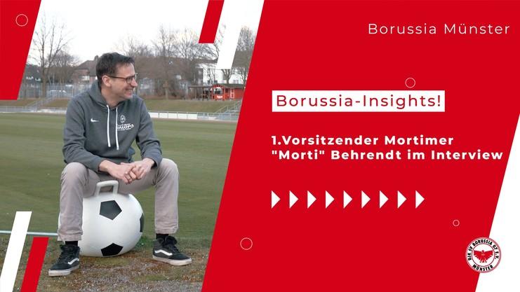Die vor kurzem gegründete Medienwerkstatt der DJK Borussia Münster, bestehend aus Spielern, Trainern und Verantwortlichen des Vereins, hat nun das neue Videoformat "Borussia Münster-Insights!" entwickelt. Premierengast war der im Februar diesen Jahres neugewählte 1. Vorsitzende Mortimer "Morti" Behrendt. Zukünftig werden weitere Borussen und Borussinen zu Wort kommen und Einblicke in ihren Tätigkeitsbereich aber auch aus dem Vereinsleben geben.