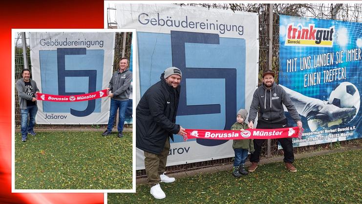 Zum Anreiz werden die beiden sowie alle Teilnehmer von Borussia III bei der Aktion selber von Gebäudereiningung Jasarov und Trinkgut Münster finanziell und in "flüssiger" Form unterstützt.