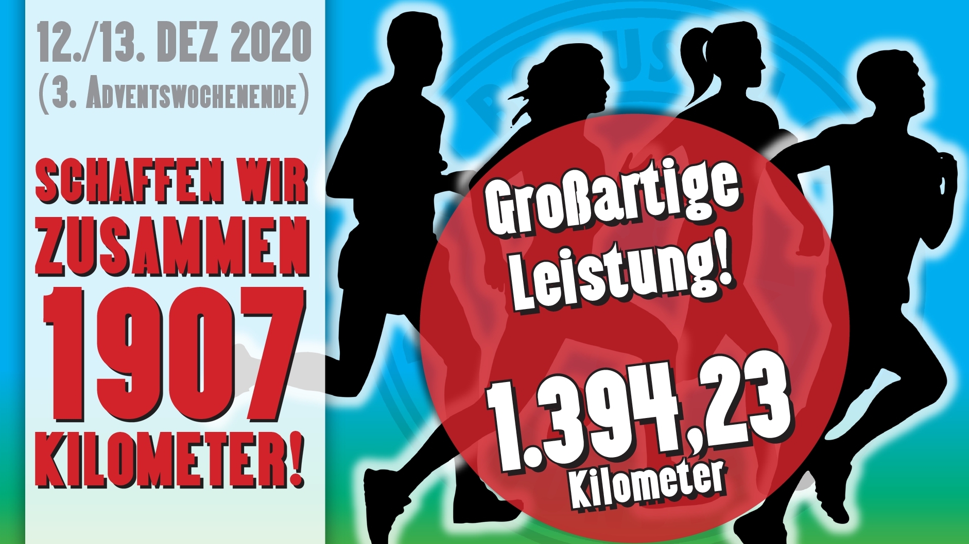 Wahnsinn, so viele Borussen/innen sowie Freunde und Unterstützer des Vereins sind am 3. Advents-Wochenende dem Aufruf der 3. Mannschaft gefolgt. Offiziell waren 153 Teilnehmer/innen beim Bewegung & Spendenlauf an den Start gegangen und haben gemeinsam knapp 1.400 Borussen-Kilometer (!) erlaufen. Das angestrebte Ziel von 1907km wurde bei der Erstauflage zwar ein wenig verfehlt, trotzdem ist dies ein großartiges Gesamtergebnis. Schön anzusehen war, dass dabei die Läufer/innen, übrigens aus allen Abteilungen des Vereins, mit ihren Outfits das Geistviertel und die Umgebung in „borussenrot“ erstrahlen ließen. Ein weiterer positiver Aspekt ist, dass so viel Geld zu Gunsten der Aktion "Spenden-Weihnachtsbaum" sammeln konnten, der dabei hilft Projekte unserer Jugenabteilungen umzusetzen. Hier findet ihr Impressionen und Laufergebnisse.