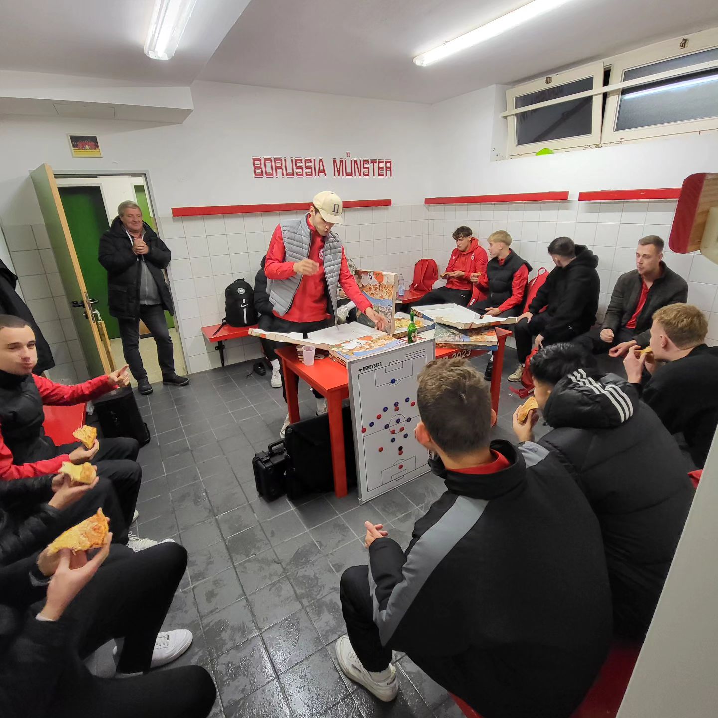 Nach dem furiosen 4:3 Heimsieg gegen Tabellenführer SUS Neuenkirchen freut sich die Mannschaft über die "Pizza-Siegprämie" von @yellowcabmuenster