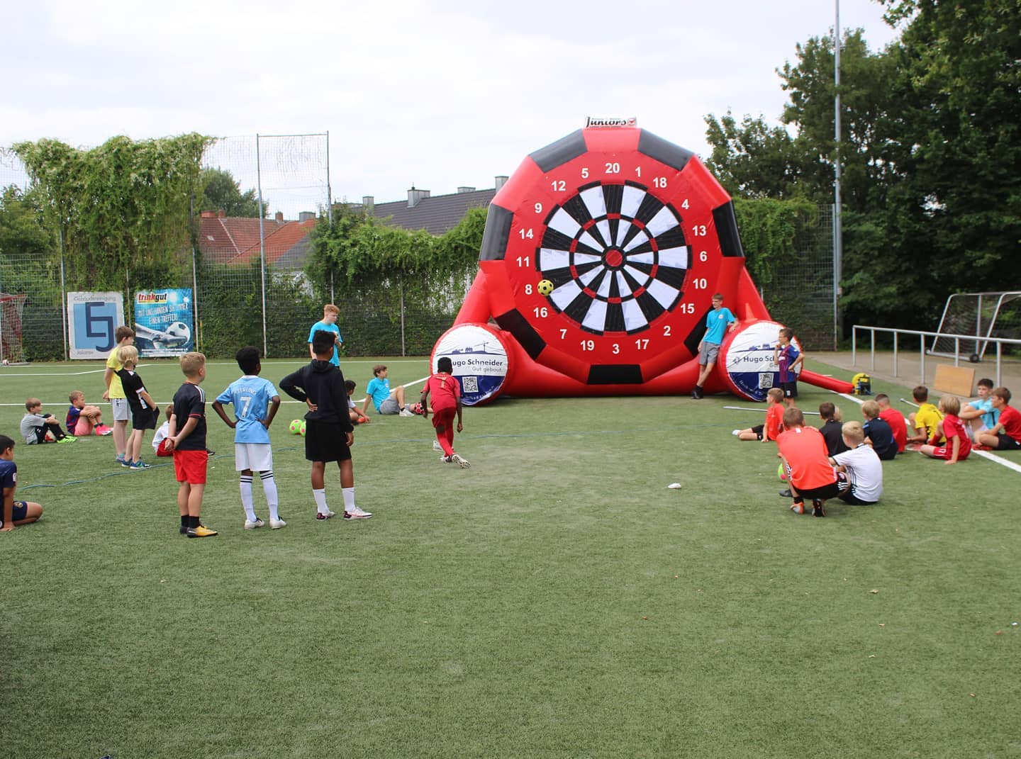 Der 2. Tag des Borussen-Ferienparks beginnt mit dem ersten Shootout an der Fußball-Dartscheibe.