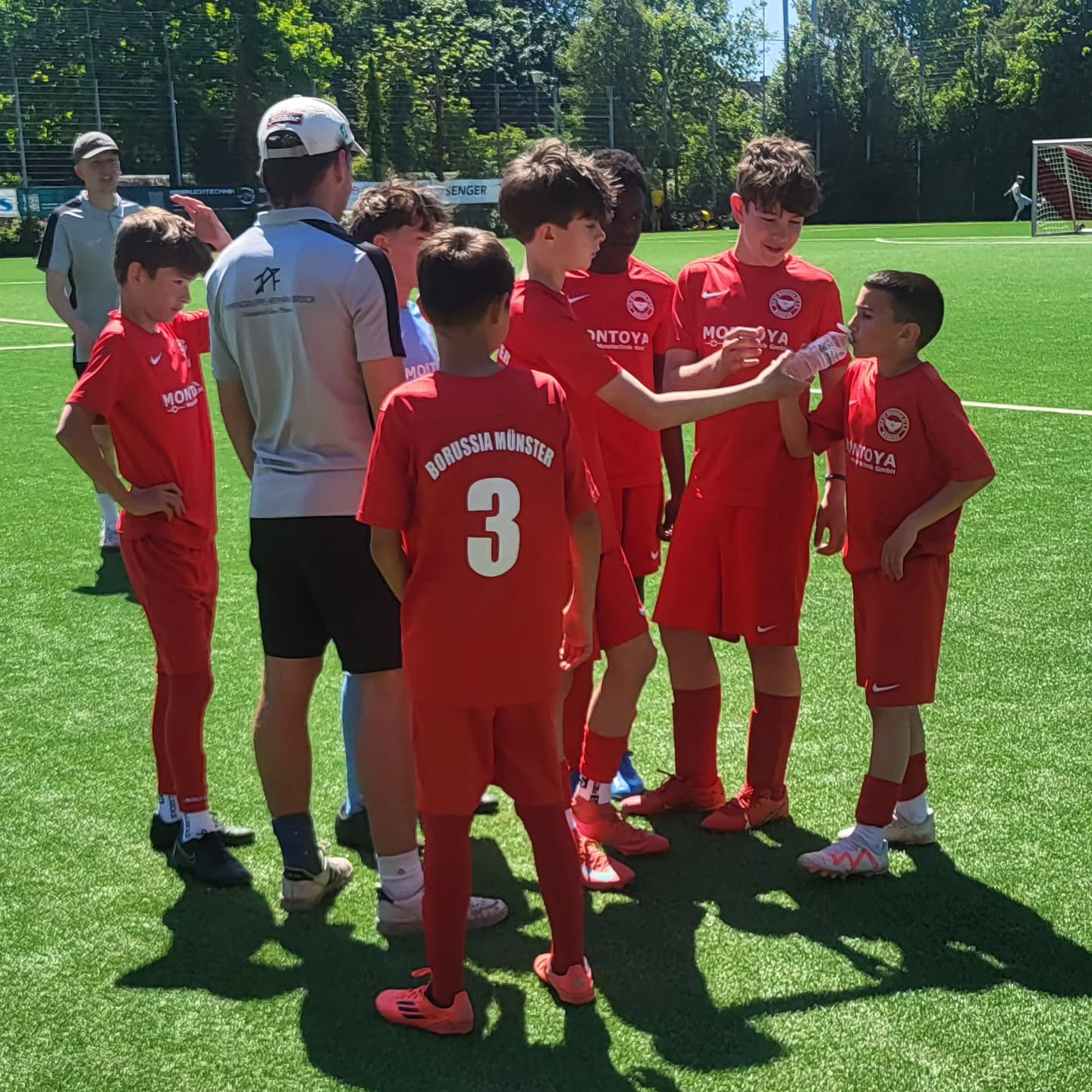 Am vergangenen Sonntag kam es zu einem freundschaftlichen Kräftemessen der U12/U13 Teams von @djkwackermecklenbeck und den #borussenjuniors. Dank der Unterstützung von Remi Mensinck, Vorsitzender des DJK Kreisverbandes Münster, konnten sich die Spieler und Trainer im Anschluss des Turnieres bei einem kleinen Imbiss und kühlen Getränken stärken.