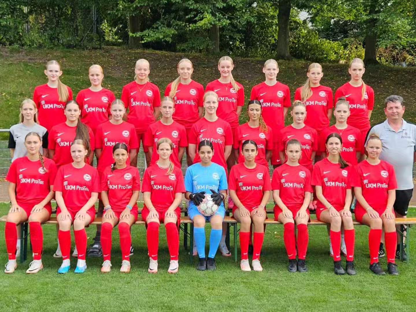 Dank der UKM ProTec: U17-Juniorinnen freuen sich über neue Trikots und Präsentationskleidung.