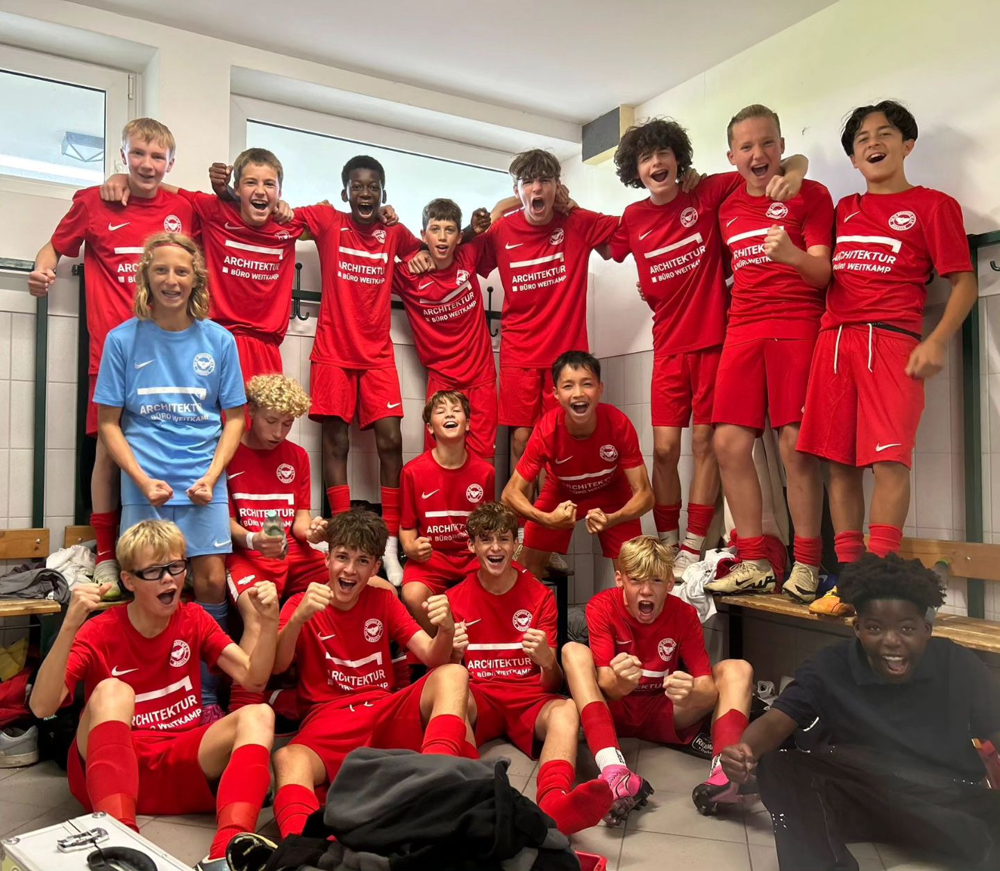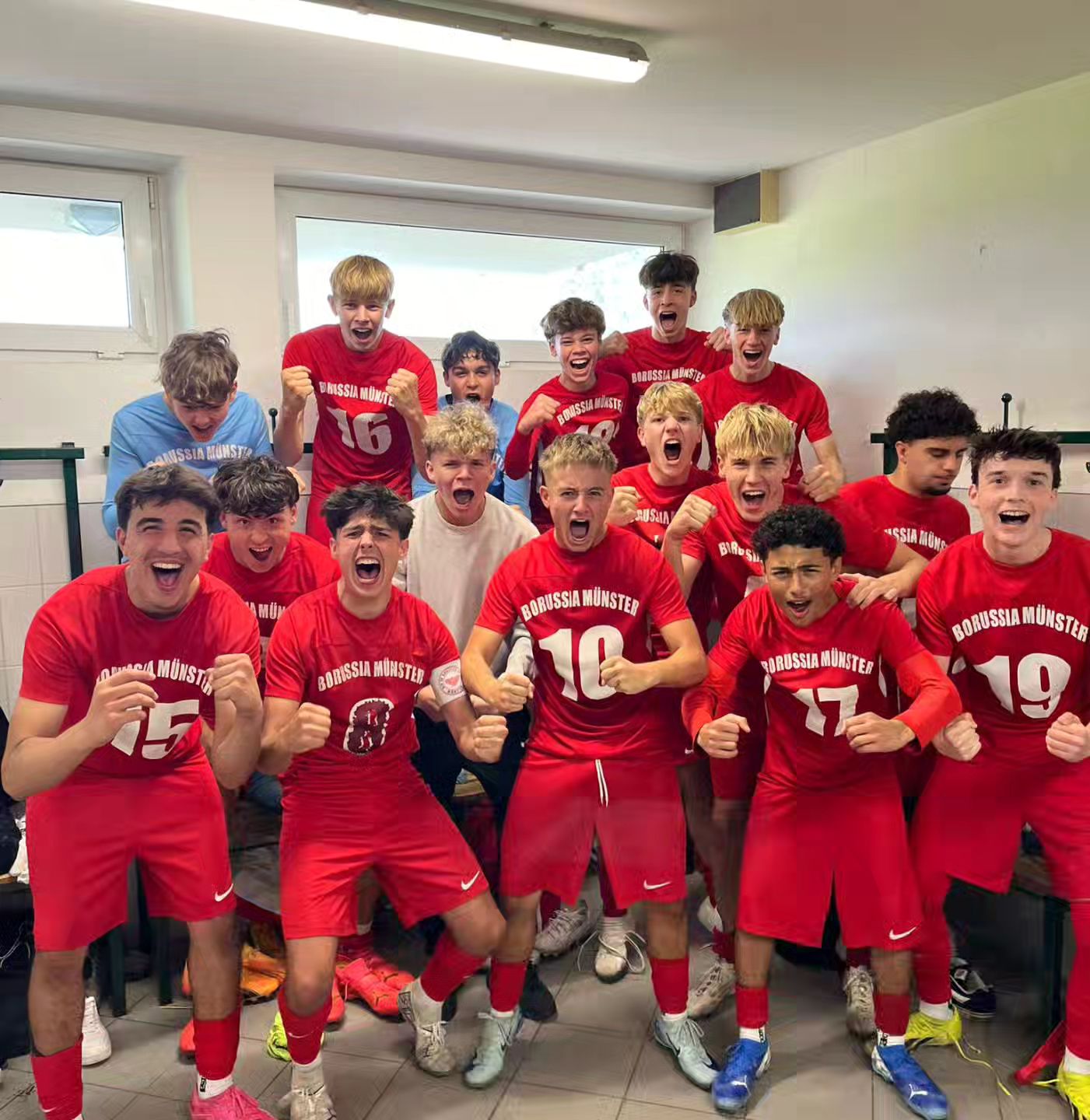 Die Borussen-Juniors der U17-1 freuen sich über den 4:0 Auswärtssieg bei der U16 vom 1. FC Gievenbeck.