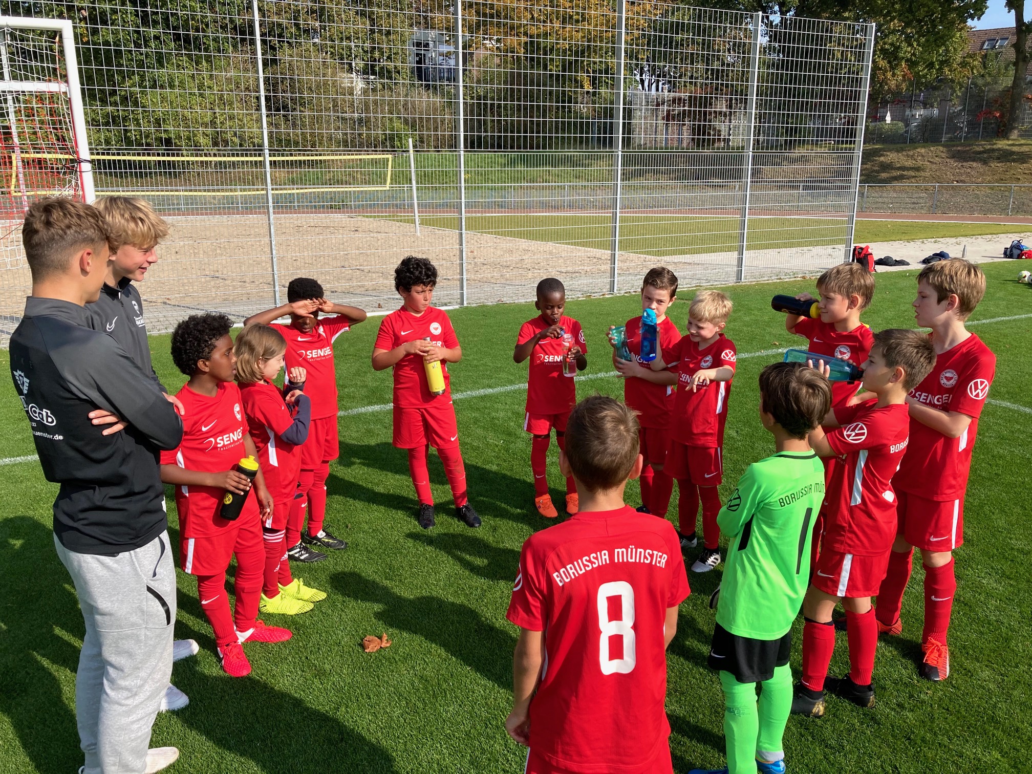 Das Trainer-Duo Wegener/Wischmeier: "Die Jungs bekommen hier bei Borussia Münster so viel geboten. Gute Trainingsbedingungen, hervorragendes Trainingsmaterial oder auch einheitlich Ausstattung, das ist nicht selbstverständlich. Für uns war sofort klar, dass wir uns als Team an der Aktion beteiligen und etwas unserer Zeit spenden".
