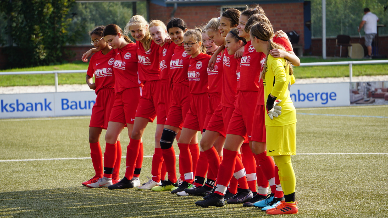 Nach fünf intensiven Woche der Vorbereitung fieberten wir dem ersten Heimspiel der Saison entgegen. Das Spiel gegen die JSG Gievenbeck Nienberge stand bis zuletzt auf der Kippe, einzig der Kompromiss die Partie auf dem 9er statt 11er Feld auszutragen machte die Austragung erst möglich. Warum jedoch die Mädels (anders als die Jungs in diesem Fall) auf die ungeliebten Jugendtore (5m) spielen müssen erschließt sich nicht und verhindert attraktiven Fußball und die Entwicklung der Fußballerinnen.