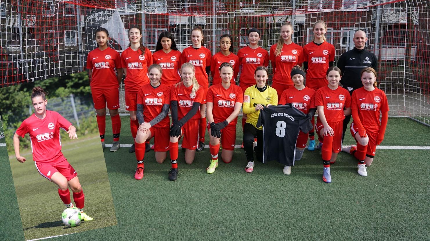 Die #borussenmädelz der U17 widmen den 8:0 Heimsieg gegen die SG Telgte ihrer Mitspielerin Yella, die nach schwerer Verletzung an ihrem Comeback arbeitet.