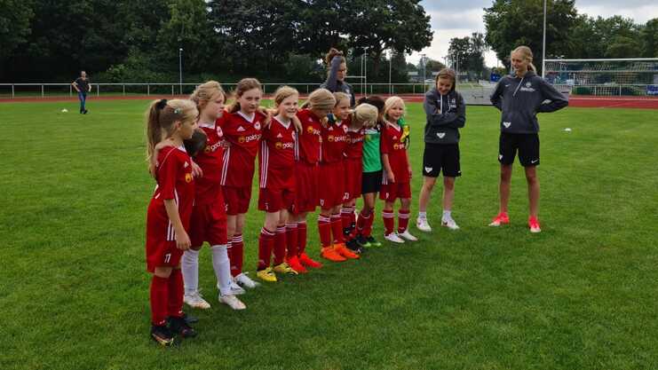 Nachdem die Mannschaft am letzten Wochenende beim Auswärtsspiel in Kinderhaus erstmals U15-Luft schnuppern konnten und sich trotz der 0:4 Niederlage sehr achtbar aus der Affäre gezogen hat, ging es im ersten Heimspiel gegen den Tus Altenberge gleich gegen das nächste Schwergewicht in unserer Gruppe. Bei sonnigem Spätsommerwetter ging es für Charlotte, Finja J., Lena, Finja, Finni, Finchen, Anna-Lia, Laura, Hannah, Inga, Martha, Meri und Mia darum, den zahlreichen Fans ein gutes Spiel zu liefern und bestenfalls die ersten drei Punkte einzufahren.