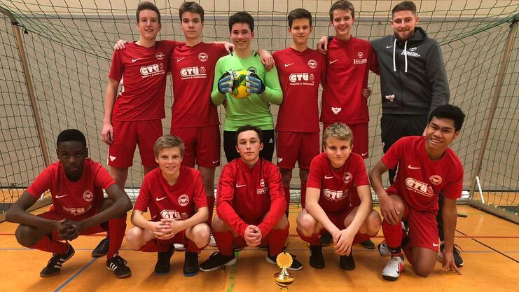 Das Team der Borussen-Juniors war am heutigen Montag zu Gast beim Hallenturnier der SpVg. Oelde. Bei 6 teilnehmenden Mannschaften wurde im Modus Jeder gegen Jeden gespielt. In der Auftaktpartie traf man auf den ASK Ahlen und konnte mit einem 5:3 Sieg gut in das Turnier starten. Es folgten das Aufeinandertreffen mit dem FC Gütersloh. In der ausgeglichenen Partie trennte man sich 3:3. Im weiteren Verlauf spielten die Borussen richtig gut auf und wurden durch 3 weitere Siege gegen SpVg. Oelde (6:0), SUS BW Lipperbruch (3:1) und SUS Kaiserau (5:2) verdient Turniersieger.