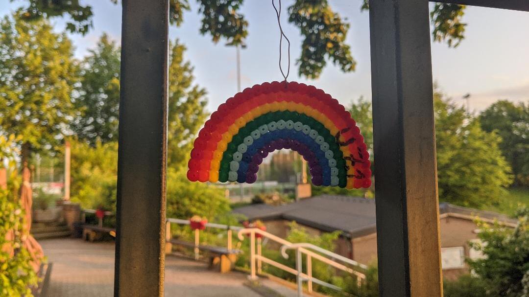 Ein besonderer Gruß von den #borussenjuniors der U7-1 hing nun am Eingang zur Sportanlage an der Grevingstraße. Ein selbstgebastelter Regenbogen der Hoffnung spenden soll das der Ball bald wieder am Borussen rollt und man seine Freunde und Mitspieler endlich wieder sehen darf.