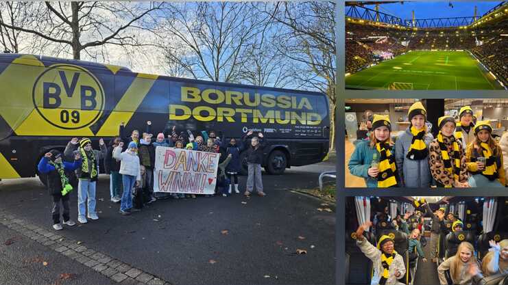 Am Stadion angekommen, erhielten die Mädchen Weihnachtsmützen und BVB-Schals, bevor es weiter in den VIP-Bereich ging, wo kulinarische Highlights auf sie warteten. Um 16:30 Uhr begann das große Weihnachtssingen in einer atemberaubenden Atmosphäre. Mit den prominenten Gästen Alexander Klaws und Yvonne Catterfeld, die gemeinsam mit allen Anwesenden zahlreiche bekannte Weihnachtslieder anstimmten, wurde das Stadion in eine festliche Klangkulisse verwandelt.
