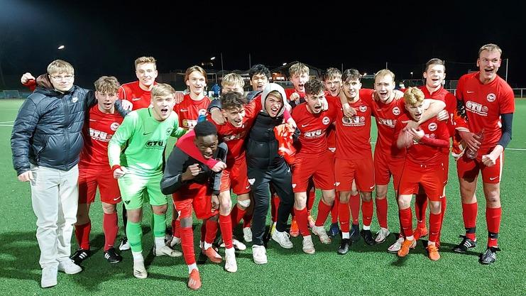 Das Team der U19-1 freut sich über den überzeugenden 6:1 Sieg im Nachholspiel beim SV Herbern.