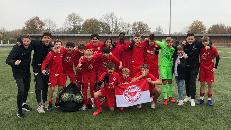Die U15-1: Erschöpft und glücklich nach dem 2:0 Auswärtssieg in Ibbenbüren.