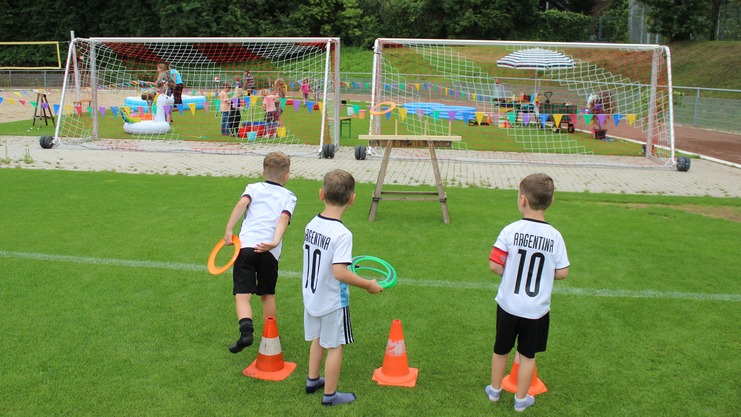 Bei der "Spaß-Olympiade" konnten die Teilnehmer*innen an 10 unterschiedlichen Stationen ihre Fähigkeiten unter Beweis stellen und sich in einem sportlichen "Wettkampf" untereinander messen. So zum Beispiel bei einem Hüpfball-Wettbewerb, Zielwerfen mit einer Mini-Frisbee, Geschwindigkeitslauf mit Messgerät, Becher-Stelzen Parcourlauf, Entenangeln, Bogenschießen, Ringewerfen uvm.