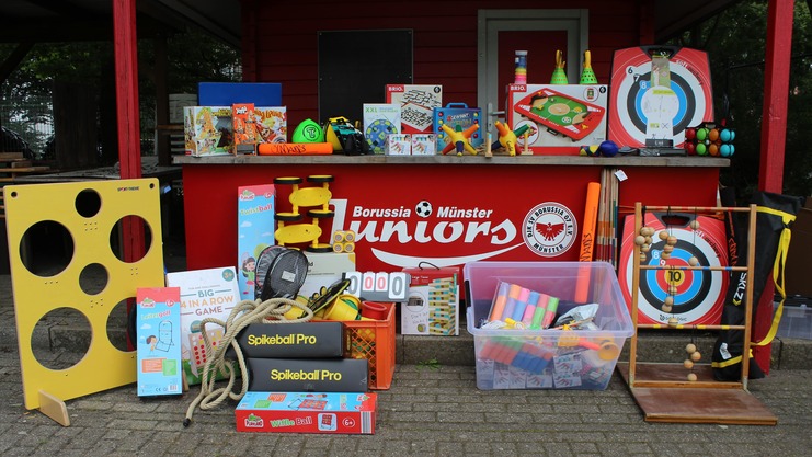 Für den Borussen-Ferienpark, die offene Spaß und Bewegungsfreizeit für Kinder bis 6 Jahren, haben nun die vielen ehrenamtlichen Helfer*innen Bubas Bude in eine Sport- und Spielbörse umgestaltet. So wurden jetzt bereits schon über 50 Spaß-, Mitmach- und Bewegungsspiele, die selbstverständlich vor Ort schon mit viel Fun von den Teamern getestet wurden, eingeräumt. Während der Sommer-Ferienfreizeit können sich die Kinder hier die div. Spiele unkompliziert ausleihen und entsprechend nutzen.