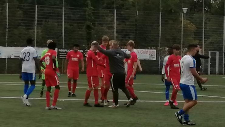 Engagierte Auftritt der U19-1 wird mit 3 Punkten und einer Umarmung vom Trainer belohnt.