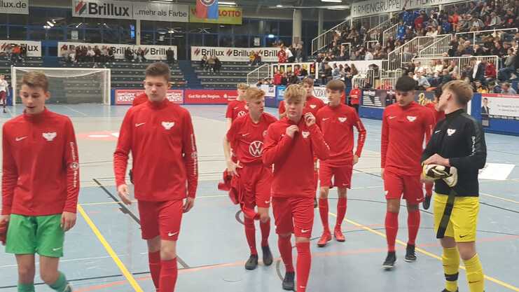 Nach einer geschlossenen Mannschaftsleistung in der Vor- und Zwischenrunde zogen die „Pahlig-Jungs“ verdientermaßen in das Halbfinale der diesjährigen Stadtmeisterschaften ein. Durch unnötige Gegentreffer und einigen indviduellen Fehlern mussten man sich hier aber dem Gastgeber 1. FC Gievenbeck, den man in der Vorrunde noch bezwingen konnte, deutlich geschlagen geben. Auch wenn die Enttäuschung aufgrund der deftigen Niederlage nach Spielende sehr groß war, dürfen die Borussen-Juniors aber stolz auf die gezeigte Leistung und vielleicht noch mehr auf die mannschaftliche Geschlossenheit während des Turnierverlaufs sein.