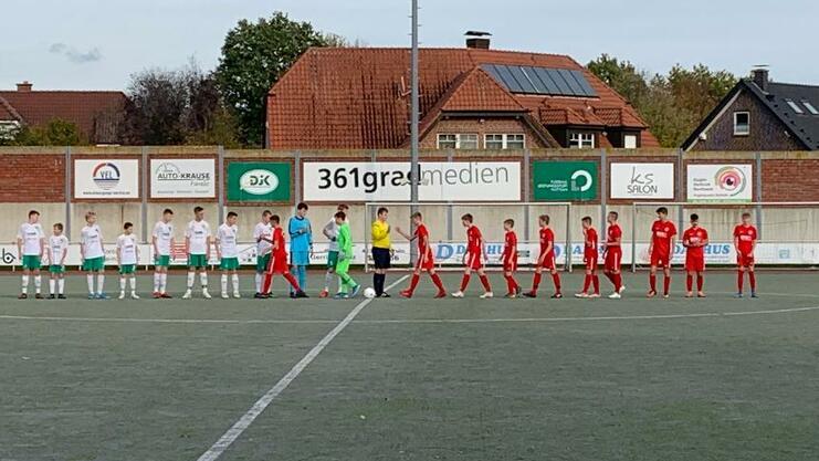 Anpfiff. Ausgeglichenes Spiel in der 0:1 in der fünften Minute. Langer Steilpass über unsere linke Seite. Der Stürmer macht das gut, geht auf das Tor zu. Flacher Ball in die lange Ecke. Ärgerlicher Beginn. Borussia versucht nach vorn zu spielen und übernimmt das Kommando. Lengerich ist bei Kontern gefährlich. Julian mit dem Weitschuss an den Pfosten in der elften Minute. Paul auf Maddox. Maddox bleibt ruhig und schiebt den Ball rechts am Torwart vorbei. 1:1 in der 13. Minute. Lasse, Giacomo und Benni im Spielaufbau auch in schwierigen Situationen. Mutig und gut. Freistoß für Lengerich. Aus 30 Metern ein Chipball. Ganz schlecht verteidigt und es steht 1:2 in der 18. Minute. Sehr starker Angriff über Benni, Raphael, Moritz, Laura und Paul, der spielt steil auf Maddox. Links am Torwart und leider am Tor vorbei. 20 Minuten gespielt. Borussia übernimmt wieder das Ruder. Moritz und Julian mit dem Doppelpass. Der Schuss vorbei. Lengerich ist in den Zweikämpfen etwas präsenter. Julian scheitert am Torwart. Freistoß Borussia. Julian auf das Tor. Wieder der gegnerische letzte Mann. Noch zehn Minuten in der ersten Halbzeit. Lengerich mit dem Schuss auf das Tornetz. Da muss mehr kommen. Wieder Lengerich. Benni verliert den Zweikampf. Pass in die Mitte. Ganz viel Glück für unser Team. Das Defensivverhalten nicht nicht richtig gut. Wieder Freistoß für Lengerich. Der Pfiff war falsch. Halblinke Position. Wieder schwach verteidigt. Aber kein Tor. Der nächste Freistoß für Lengerich. Dieses Mal halb rechts. Giacomo sicher und der schnelle Ball auf Ali. Abgeblockt. Lengerich hat mehr Torabschlüsse als unsere Mannschaft. Noch drei Minuten. Ecke Moritz. Kopfball Lasse. Keine Gefahr. Julian nimmt Tempo auf, Pass auf Ali, der schließt ab. Rechts vorbei. Borussia drückt noch einmal.