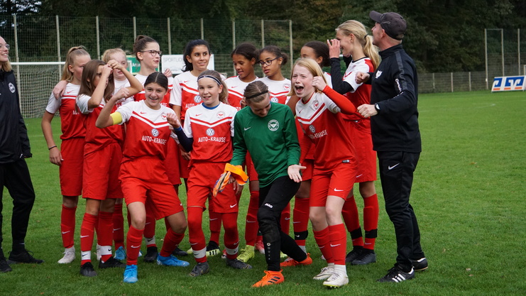 Am heutigen Samstag trafen unsere U11 Juniorinnen auf den SC Gremmendorf. In ihrem erst 3. Spiel nach Gründung der Mannschaft konnte das Team um Kapitänin Jonna den zweiten Sieg einfahren. Angetrieben von einer überragenden Anni bekam die glänzend aufgelegte gegnerische Torhüterin Paula viel zu tun. Gegen die Tore von Jonna B. (3), Anni (2) und Jonna R. war sie allerdings machtlos. Auch Gremmendorf konnte 3 gute Angriffe zum Torerfolg nutzen, so dass am Ende ein verdienter 6:3 Erfolg der Geistelf auf dem Papier stand.