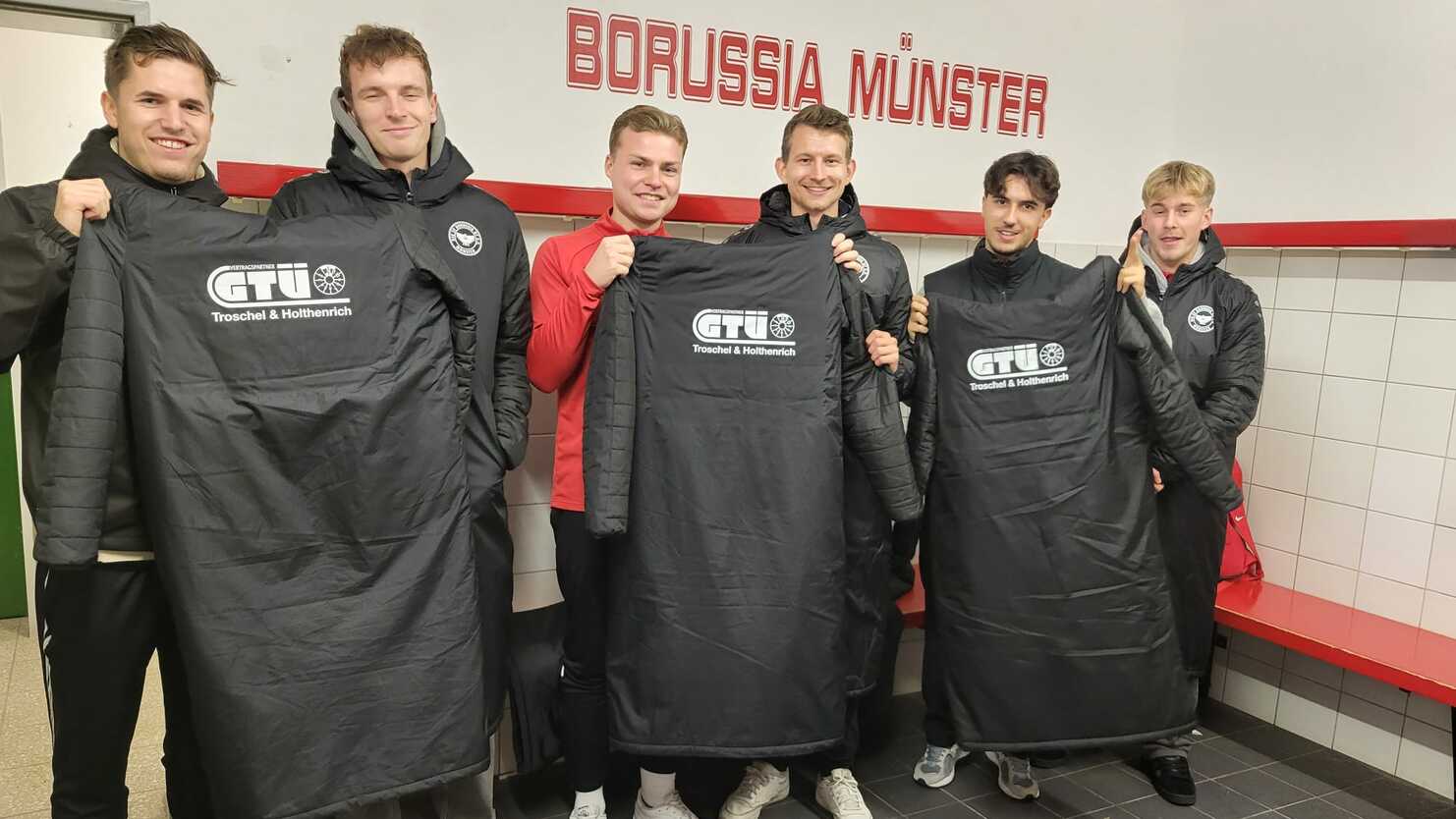Passend zum Hammerstraßen-Derby im Westfalenpokal gegen den Nachbarn und Drittligisten SC Preußen Münster, konnte das Team, die Trainer und der Staff, nun die neuen Präsentationsanzüge und Polo-Shirts, die von KFZ-Sachverständigenbüro und GTÜ-Prüfstelle Troschel und Holthenrich gesponsert wurden, entgegennehmen.