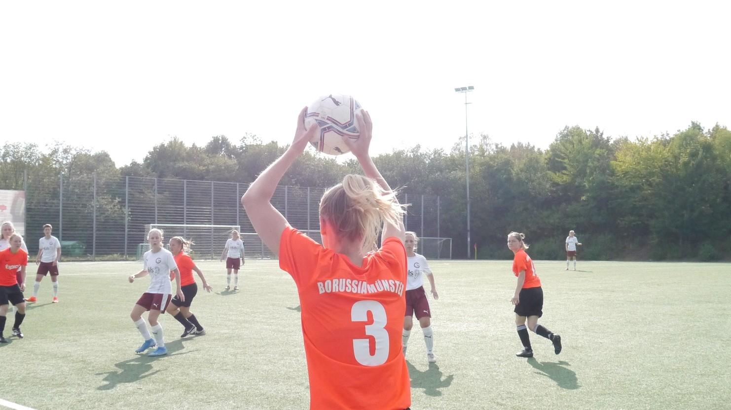 Die Anfangsphase bereitete dem Team Schwierigkeiten, da Gievenbeck von der ersten Minute an hoch anlief. Doch nach einem Abpraller nutzte Sarah Heinlein in der 5. Minute ihre Chance und brachte die Borussia in Führung.