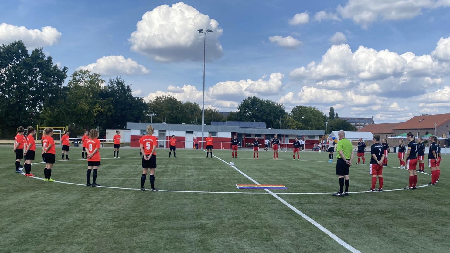 Wenn Fußball zur Nebensache wird: Vorm Spiel setzten beide Mannschaften mit einer Schweigeminute ein gemeinsames Zeichen gegen Trans- und Homophobie. Am Freitag war bekannt geworden, dass das Opfer der Prügelattacke beim CSD seinen Verletzungen erlegen ist.
