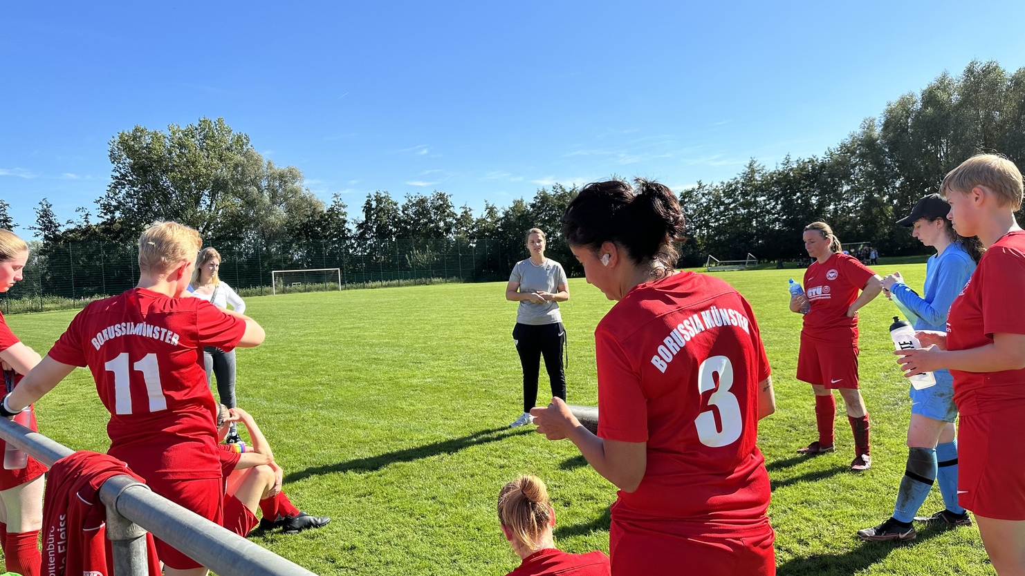 In der Halbzeitpause betonte das Trainerteam um Emily Dieckhues, Dorina de Mür und Kathi Egbringhoff, dass das Team mit erhobenem Kopf, breiter Brust und körperbetonter in die zweite Halbzeit gehen müsse. Vor allem müsse offensiver gespielt werden, um das Spiel zu drehen.