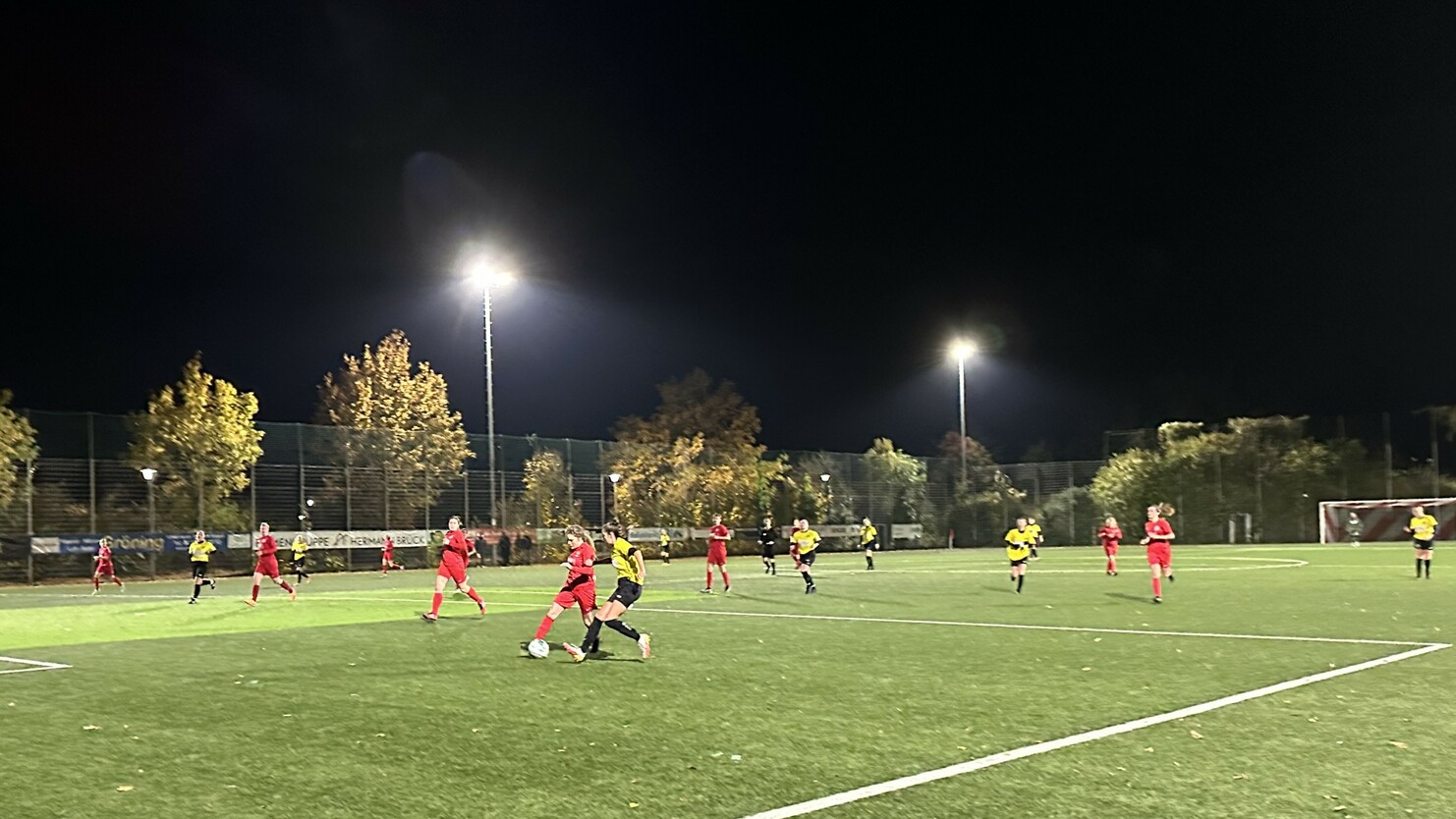 Am vergangenen Sonntag hatten wir uns viel vorgenommen und bereits beim Aufwärmen merkte man der Mannschaft die Konzentration und den Willen an. Man hatte sich vorgenommen den Tabellendritten, Concordia Albachten, zu ärgern und beim ersten Flutlichtspiel dieser Saison den Sieg zu ergattern. Allerdings war der Beginn nicht ganz ideal, da die Gästinnen sehr druckvoll in die Partie starteten, aber durch konzentrierte Abwehrarbeit gelang es uns dieses erste Sturmlaufen ohne Gegentor zu überstehen. Danach setzte man auch selbst viele offensive Akzente und verteidigte konsequent. Genau in dieser Phase der gefühlten Überlegenheit der Borussinnen fing man sich nach einem schnell ausgeführten Angriff in der 24. Minute den Gegentreffer. Das konnte unserer Moral an diesem Tag allerdings nichts anhaben und so folgte die prompte Antwort. Wiebke wurde an der Strafraumkante kurz vor dem Sechzehner gefoult und aus dieser aussichtsreichen Position servierte Hélène den Ball perfekt, sodass Julia nur noch mit dem Kopf einnicken musste. Der wohlverdiente Ausgleich!