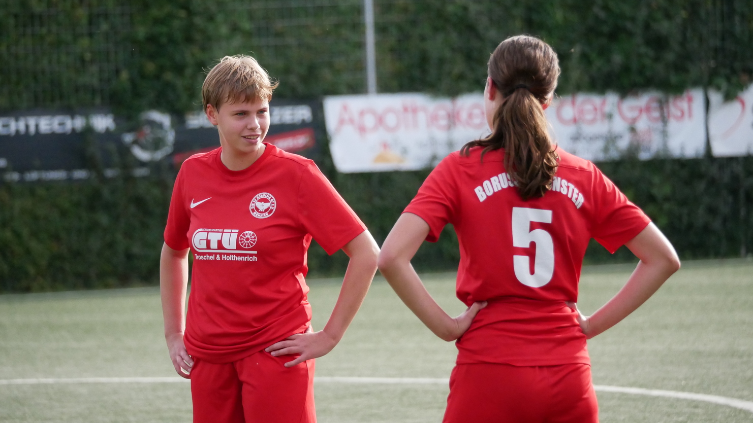Doch Borussia ließ die Köpfe nicht hängen, rappelte sich auf und hatte die Gegnerinnen von nun an besser im Griff. Es zeigte sich ein Spiel auf Augenhöhe. Die Mädels standen gut und die Zuteilung stimmte. Leider konnten wir zwei gute Chancen nicht verwerten und wurden kurz vor der Halbzeit mit dem 0:2 bestraft.