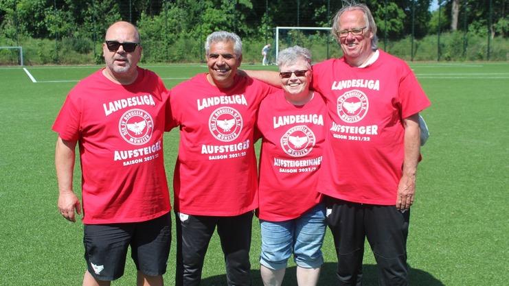 Detlev "Minnus" Rasch (links im Bild) feierte im Sommer noch mit seinem Trainerteam und den 1. Damen den Aufstieg in die Landesliga.