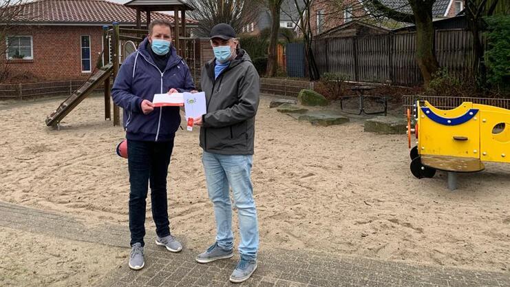 Die beiden ehemaligen Borussen-Juniors Nicolas Müller und Raphael Schröder, nun Spieler der 3. Mannschaft, organisieren ganz spontan