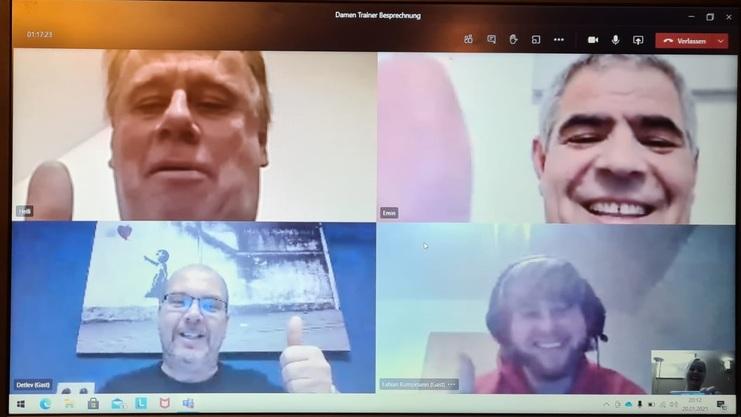 Nach dem schon vor zwei Wochen die Trainer der 1. Herrenmannschaft ihre Verträge für die nächste Saison verlängert haben, zogen nun die Trainer der Damenmannschaften nach. Per Videokonferenz konnte sich die sportliche Leiterin der Damen, Irmi Venschott, über die Zusagen und die damit verbundene weitere Zusammenarbeit freuen. So setzt Borussia Münster auch hier auf Kontinuität, denn das Trainer Duo der 1. Damen, Detlev Rasch und Jürgen Hellwich, gehen bereits in ihre 4. Saison. Nach dem Aufstieg in die Bezirksliga und dem sehr guten Saisonstart ist die Motivation der beiden nach wie vor ungebrochen, die Mannschaft weiter nach vorne zu bringen. Auch die Entwicklung der 2. Damen ist sehr positiv und so war es für Trainer Fabian Kumpmann nur reine Formsache, seine Zusage für die Saison 2021/2022 und seiner dritten Spielzeit zu geben. Das Trainer-Team vervollständigt weiterhin der stets gut gelaunte und unverzichtbare Torwarttrainer Emin Bisljimi.