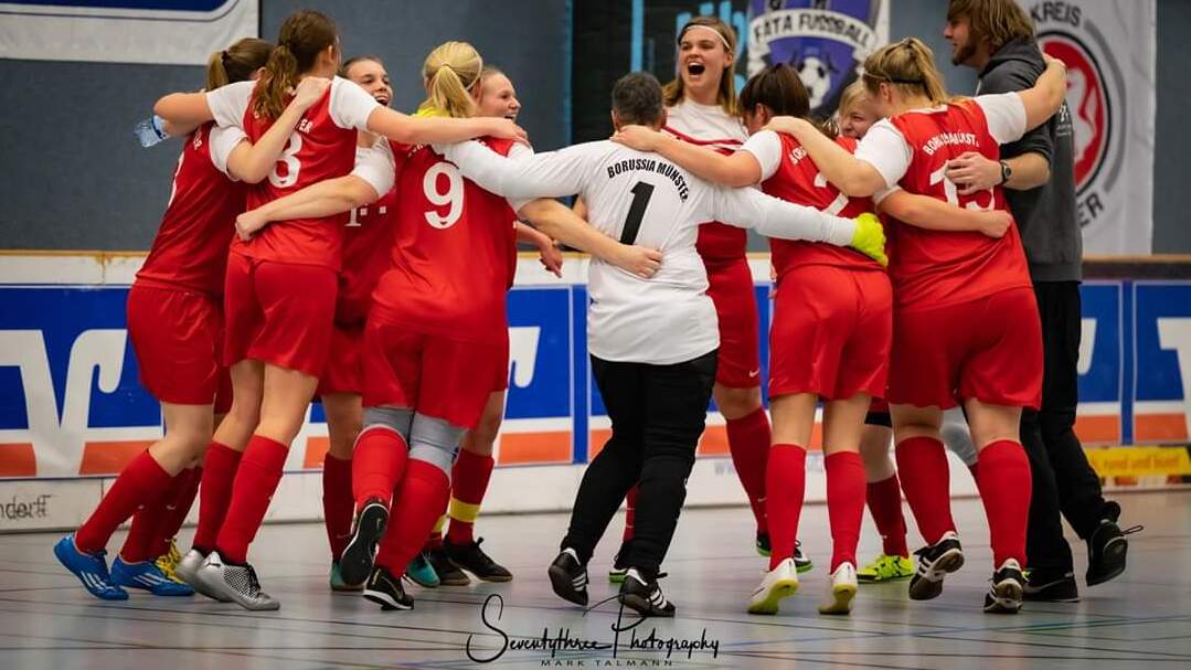 Durch die Unterstützung der angeschlagenen Spieler und nach drei Siegen gegen Eintracht Münster (2:1), GW Gelmer (6:1) und IKSV Münster (4:0) zieht das Team des Trainer-Duos Bauer/Aguiar in die Zwischenrunde der diesjährigen Hallen-Stadtmeisterschaften ein. Am Samstag wartet dann in der Halle Berg-Fidel in einer sehr interessanten Gruppe der SC Preußen Münster II, SC Münster 08 und FC Münster 05 auf die Borussen. Über zahlreiche Unterstützung würde sich die Mannschaft sehr freuen.